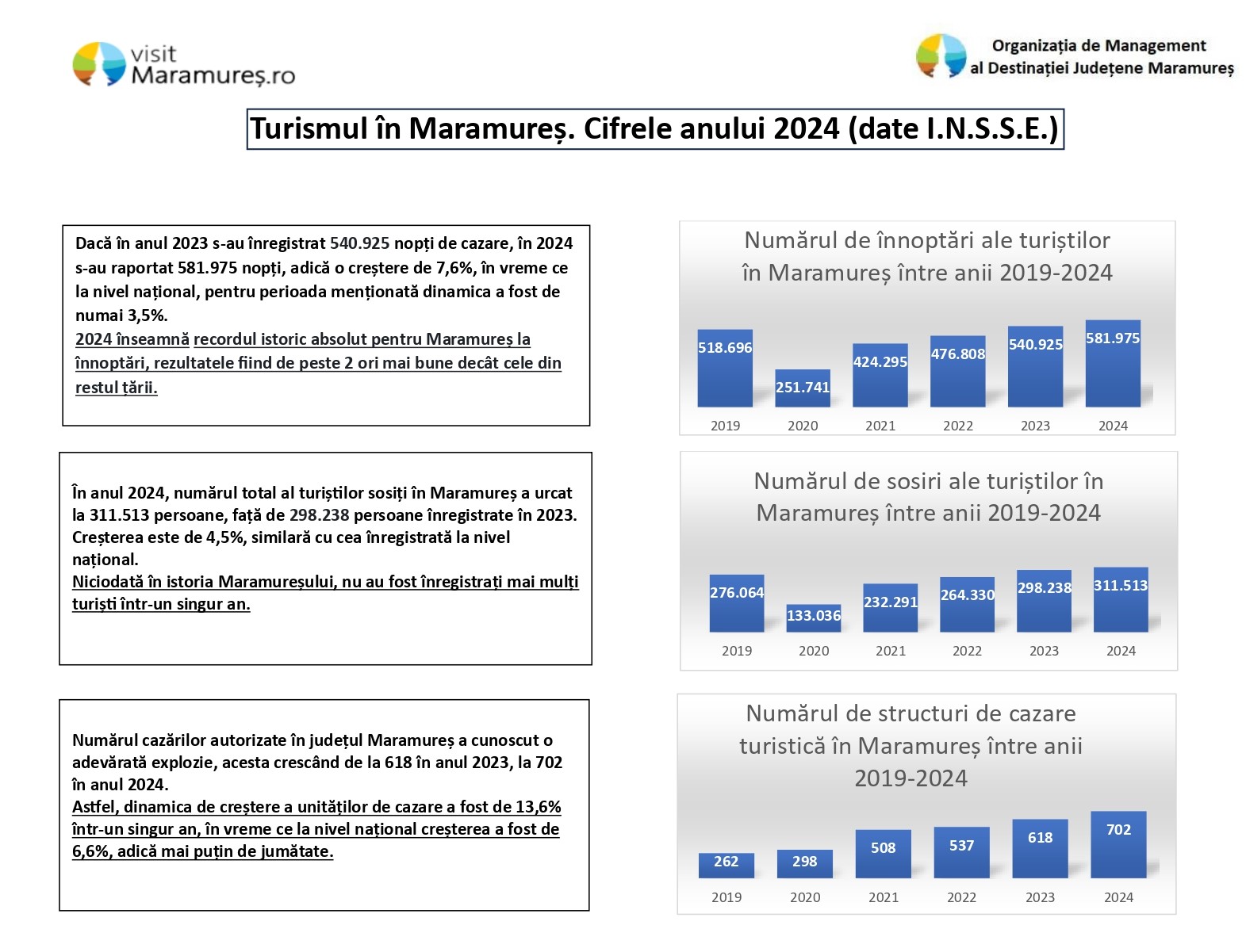 În urma centralizării datelor furnizate de Institutul Național de Statistică (I.N.S.S.E.), a reieșit că, pentru turismul din județul Maramureș, anul 2024 a fost cel mai bun din istorie.