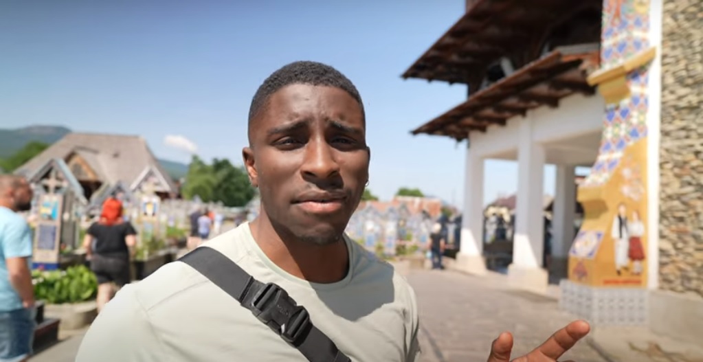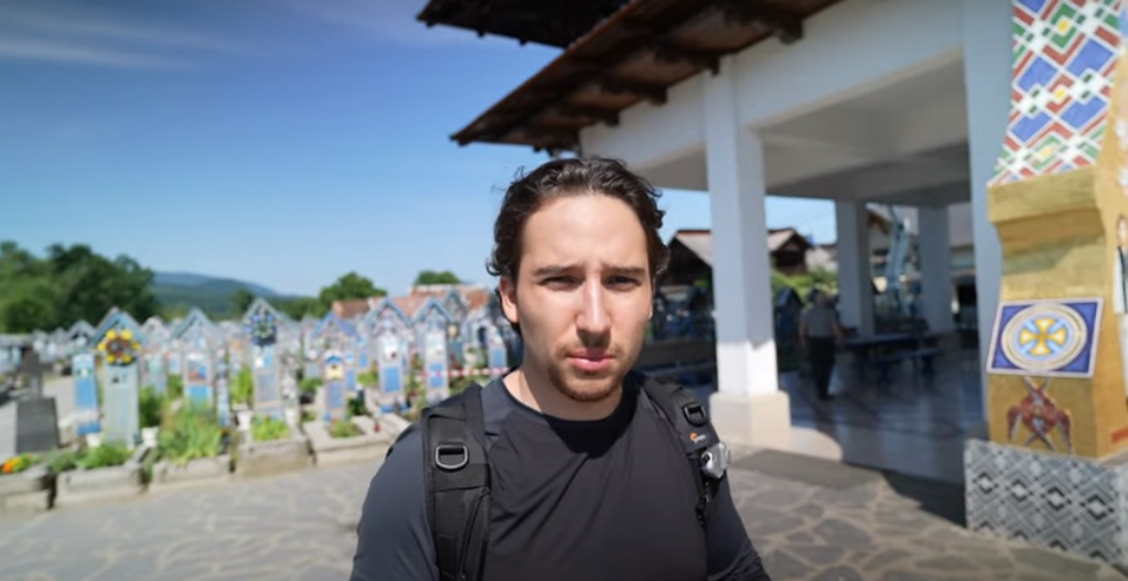 Au început un roadtrip prin țara noastră, iar fiecare destinație a devenit subiectul videoclipurilor promovate. Prima destinație s-a dovedit a fi Cimitirul Vesel de la Săpânța, pe care cei doi străini o consideră, fără să clipească, drept una din „cele 7 minuni ale României”. „Este cunoscut probabil drept una dintre cele șapte minuni ale României, așa că suntem foarte încântați să intrăm să îl vizităm. Am aflat că picturile de pe pietrele funerare, care sunt niște cruci din lemn, simbolizează un fel de poveste despre viața persoanelor înmormântate aici. Cred că arată foarte drăguț, ăsta e primul lucru pe care îl observi. Arată glam, dar e trist. Putem citi ce lucruri bune s-au întâmplat în viața unei persoane, vedem și poza, un mod bun de a-ți aminti pe cineva pe care ai iubit sau de a afla câte ceva despre o persoană necunoscută. O mică biografie”, arată cei doi studenți creatori de conținut.