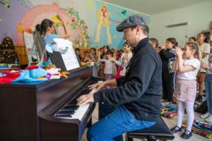Copiii vor descoperi magia muzicii clasice într-un spectacol captivant care va cuprinde un mini-concert de pian și un atelier de muzică în care cei mici vor avea ocazia să asculte, dar și să cânte cu ajutorul instrumentelor muzicale aduse în școala lor. Imediat după concert, copiii participă la un atelier interactiv de ritm și improvizație și explorează universul instrumentelor muzicale alături de pianistul Bogdan Vaida și de compozitoarea Anamaria Meza, ghidul care îi însoțește pe cei mici într-o călătorie sonoră plină de aventuri.