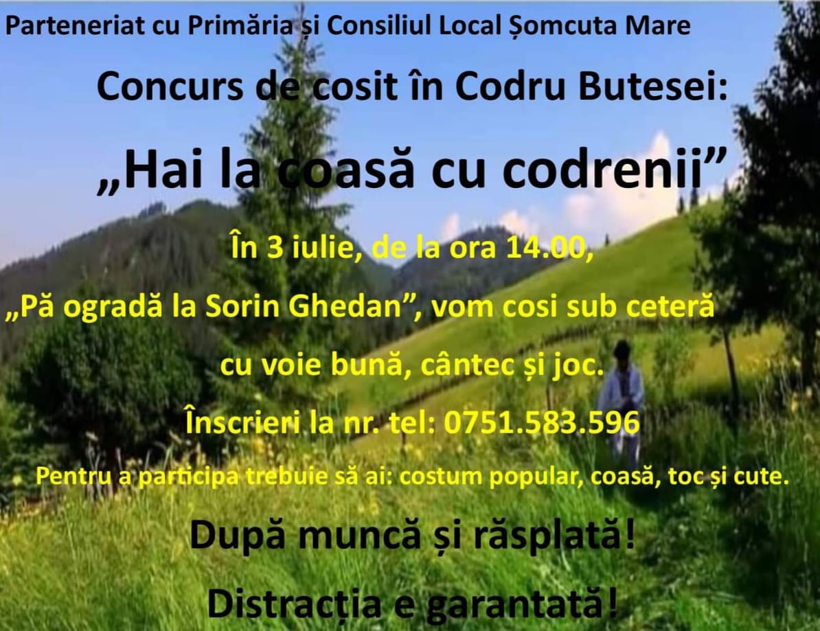 Mai exact, evenimentul se numește „Hai la coasă cu codrenii” și este organizat de Primăria și Consiliul Local Șomcuta Mare, locația aleasă fiind, evident, așa cum am menționat în titlu, un loc minunat numit Codru Butesii.