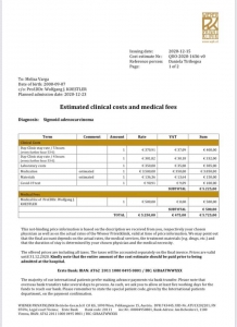 Între timp, pe rețelele de socializare se organizează licitații pentru diverse obiecte, de la rochii de mireasă la mănuși de box. Bani s-au strâns, însă ar fi o minciună să spunem că sunt suficienți. Melisa a mers la clinica din Austria și a revenit cu noutăți. „Știu că așteptați vești de la mine, din fericire azi mă simt mult mai bine, și pot să vă comunic ce am discutat în urma consultației online pe care am avut-o săptămâna aceasta cu profesorul Koestler de la clinica Wiener Privatklinik. În urma discuției, am primit un plan de chimioterapie și o operație HIPEC. Dânsul a decis că este necesar să fac cel puțin 6 ședințe de chimioterapie în ambulatoriu de zi (spitalizare de zi dacă starea îmi permite!) După încheierea celor 6 ședințe vor urma alte investigații de făcut, și anume: CT, PET CT, analize de sânge ș.a.m.d. În funcție de rezultatul investigațiilor, dânșii vor decide dacă sunt eligibilă pentru a realiza operația HIPEC. Din păcate costurile sunt extrem de mari (vezi foto document atașat), de acea apelez din nou la bunăvoința voastră de a ma ajuta în continuare să fac cele 6 ședințe de chimioterapie inclusiv operația HIPEC. Prețul atașat mai în jos este estimativ doar pentru o singură ședință de chimioterapie care trebuie făcută din două în două săptămâni. Operația HIPEC nu este inclusă deoarece dânșii nu mi-au putut da un preț deocamdată. Știu că prețul este mare, dar sper din suflet să pot să adun această sumă de bani, iar vouă vă mulțumesc din suflet pentru tot ajutorul!”, a scris Melisa.