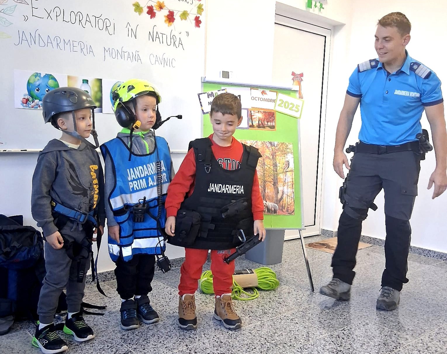 Copiii claselor primare de la Școala Gimnazială nr. 2 din Cavnic au avut o întâlnire specială cu jandarmii montani în cadrul programului Săptămâna Verde.