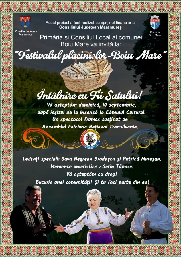 Va avea loc Festivalul plăcintelor la Boiu Mare; Sava Negrean Brudașcu și Petrică Mureșan, printre invitați