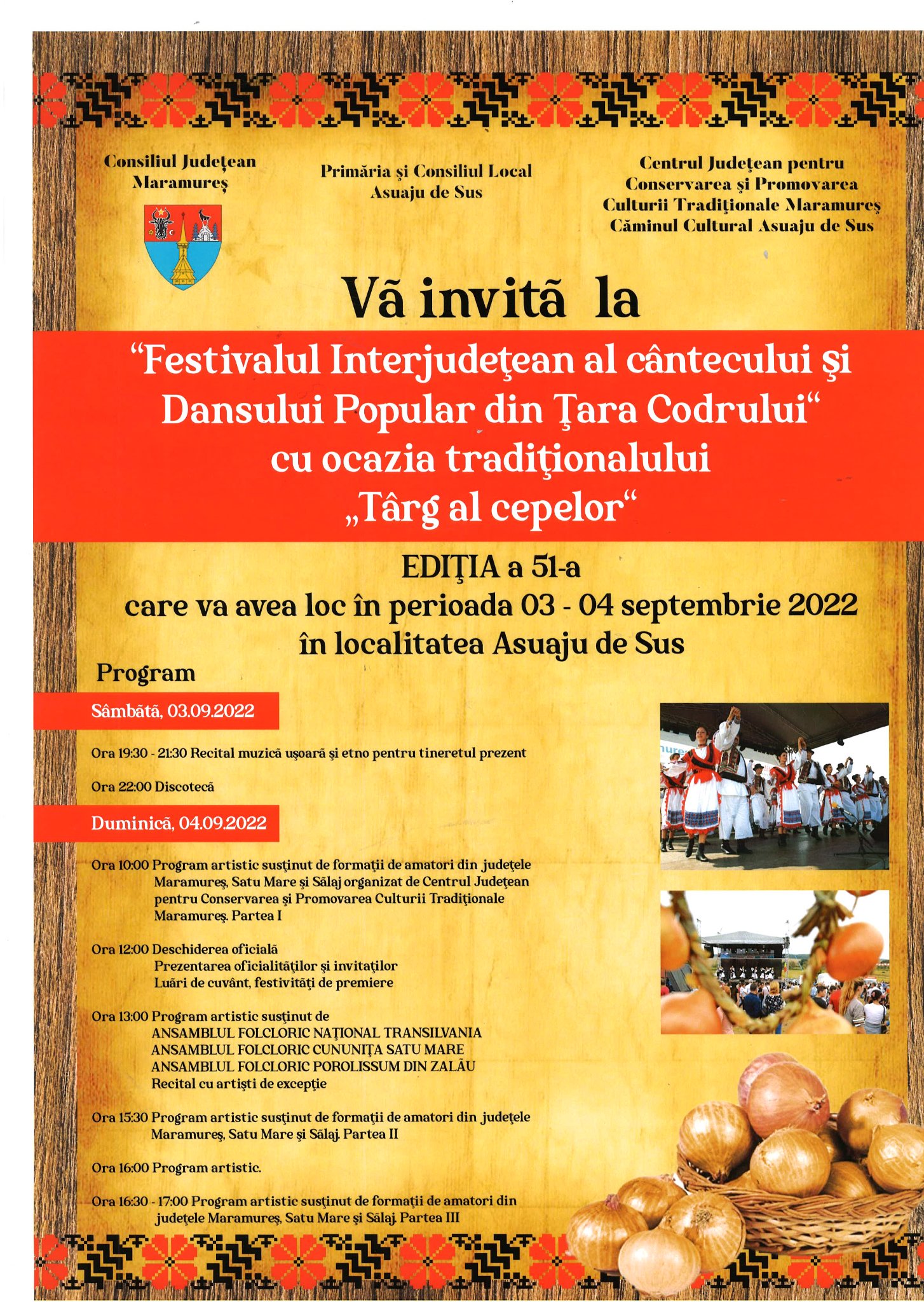 Va fi voie bună: La hotarul Maramureșului urcă artiști foarte iubiți pe scena Festivalului Interjudețean al Cântecului şi Dansului Popular din Ţara Codrului, cu ocazia tradiţionalului „Târg al Cepelor”, aflat la ediția 51 a sărbătorii!