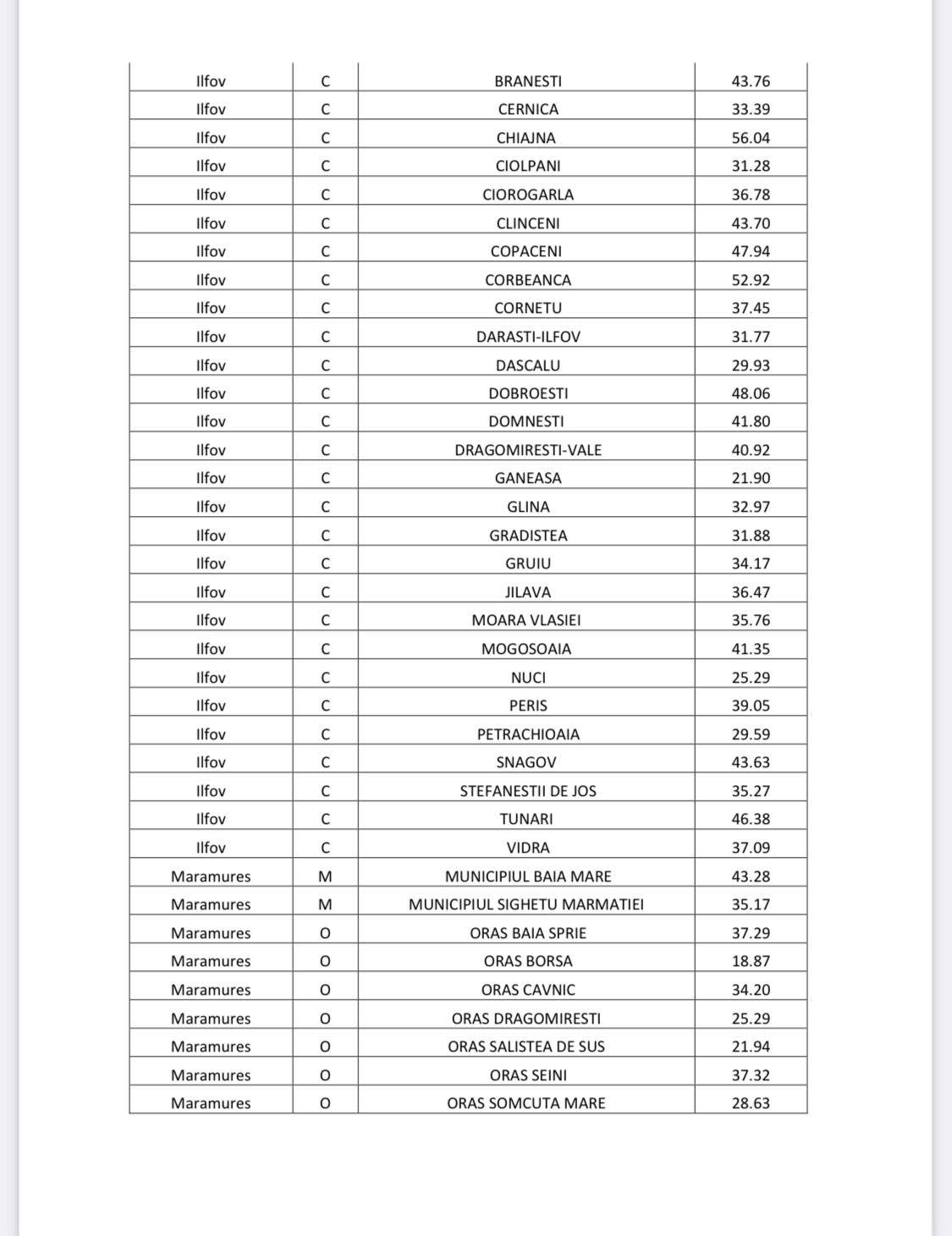 56.04% – comuna Chiajna, județul Ilfov;