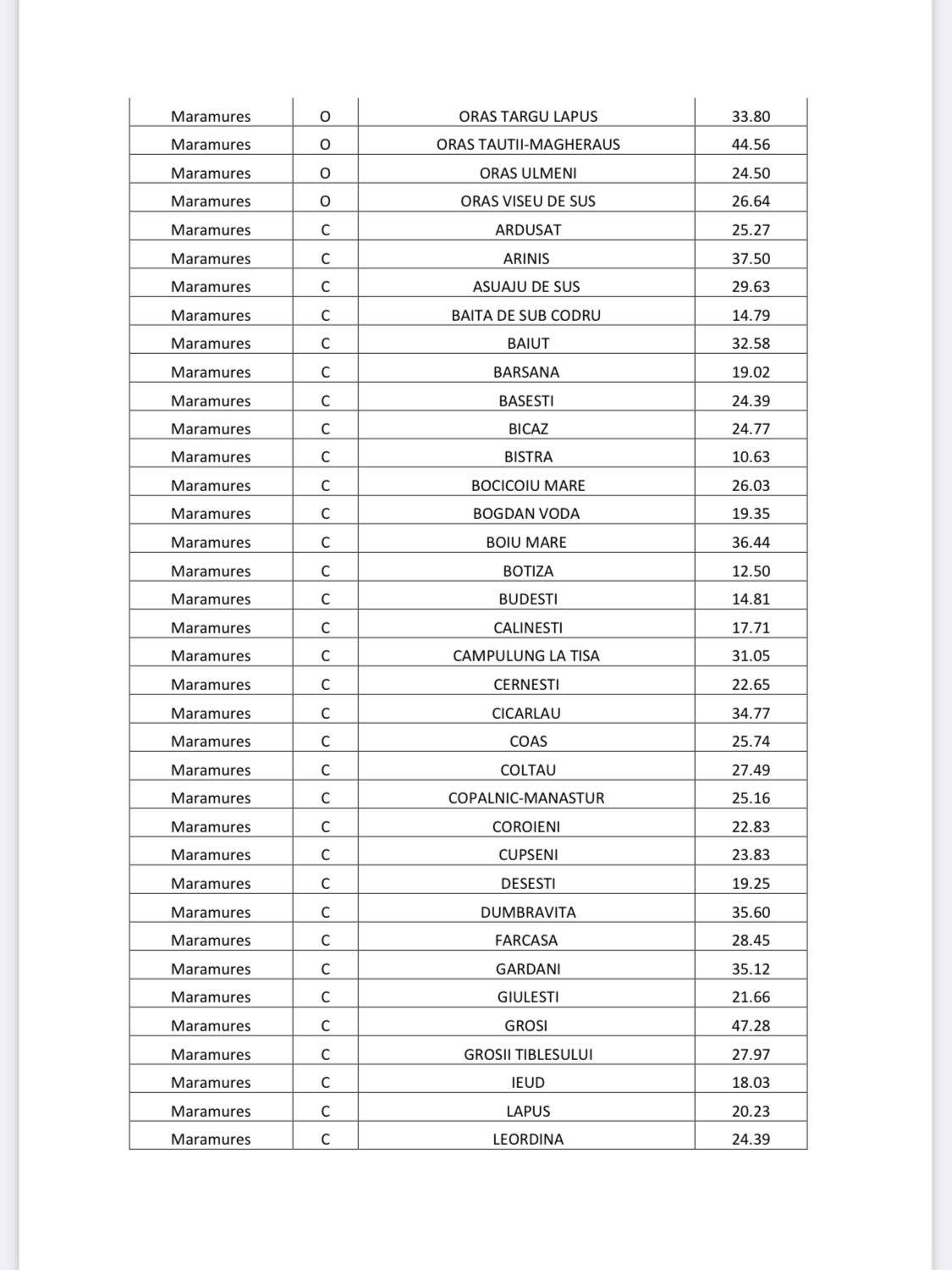 În cadrul unui document care prevede acoperirea vaccinală în România în primul an de vaccinare (27 decembrie 2020 – 27 decembrie 2021), Maramureșul figurează cu un procent de 40,73%, ceea ce înseamnă peste baremul de 38,63% din populația totală dar sub cel de 4% din populația eligibilă (cu vârsta peste 12 ani). Județele/ Capitala cu cea mai mare rată de vaccinare sunt București, Cluj, Constanța, Sibiu, Ilfov, Brașov, iar la polul opus Bacău, Covasna și Suceava. Revenim la statistica aferentă datei de 5 noiembrie, mult mai detaliată! Așa cum se poate observa, județul Maramureș nu are nicio reprezentantă în topul de față, de mai sus, cu topul localităților, ba nici nu are vreuna cu procent de vaccinare de peste 50%. Asta pentru că procentele nu sar mai mult de 40% decât doar local. Lider se menține comuna Groși, cu un procent de vaccinare de 47,28% din populația eligibilă. Pe locul al doilea se află orașul Tăuții Măgherăuș, cu 44,56%. Podiumul este completat de municipiul Baia Mare, cu 43,28% din populația eligibilă, în urcare un loc. Pe locul al patrulea se află comuna Recea, unde s-a vaccinat 42,61% din cei care au posibilitatea. Acestea sunt singurele patru unități administrativ-teritoriale care au depășit pragul de 40%, exact ca în decembrie 2021. În total, vorbim despre 16 unități administrativ-teritoriale cu o rată de vaccinare de peste 30% dar sub 40%, față de 15 în decembrie.