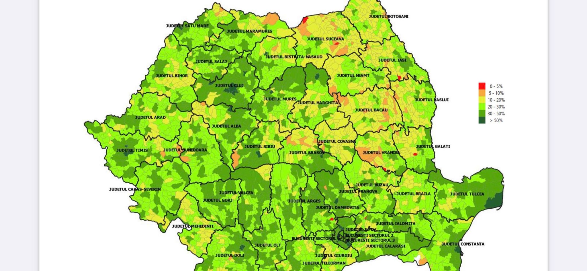 62.59% – comuna Salva, județul Bistrița-Năsăud;