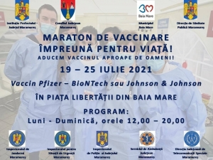 Ca atare, în municipiul Baia Mare, are loc Maratonul de Vaccinare ”Împreună pentru Viață!” în perioada 19-25 iulie 2021. Locația aleasă este iarăși Piața Libertății, adică în Centrul Vechi.