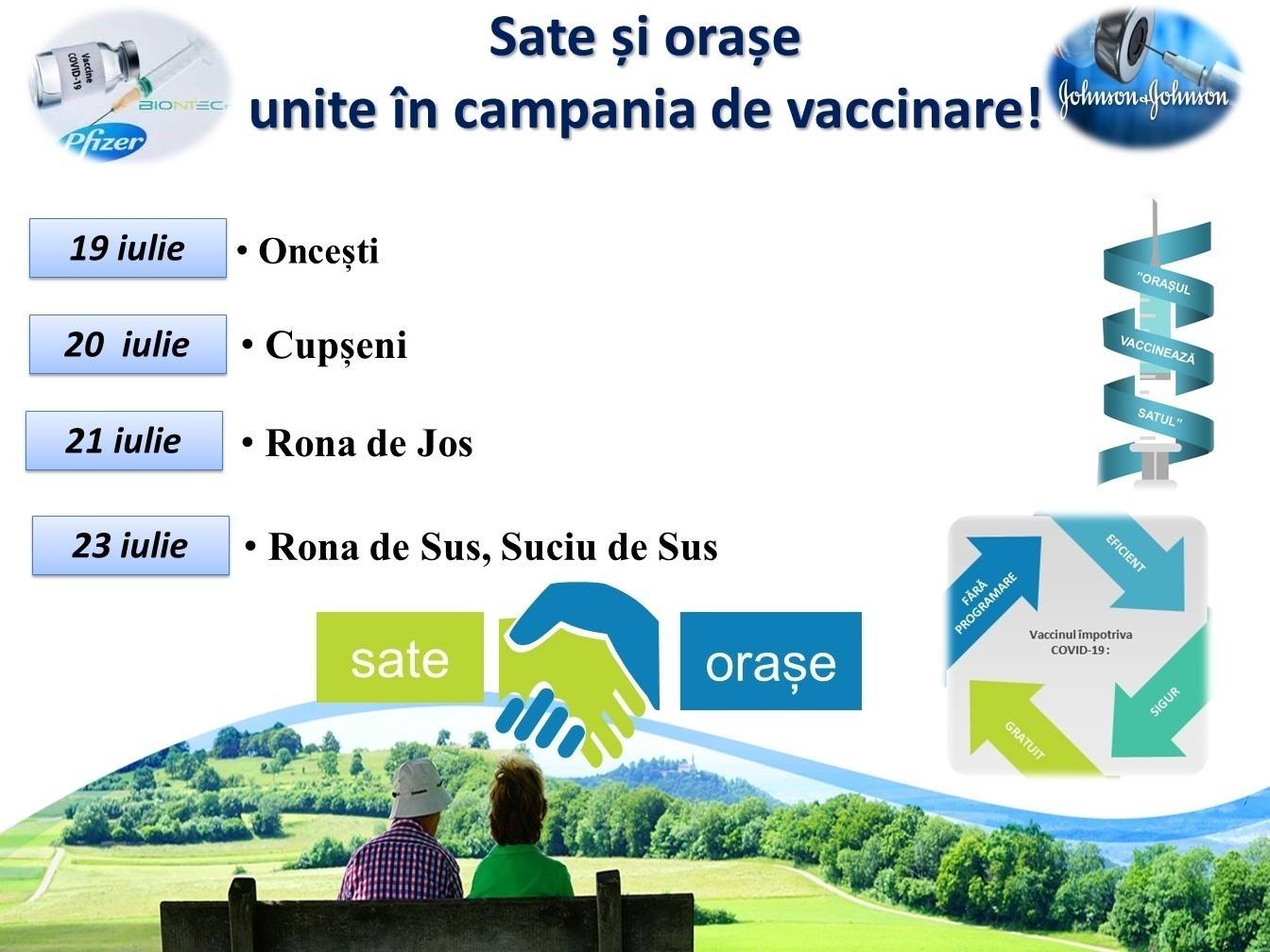Continuă în mediul rural campania de vaccinare! Instituția Prefectului-Județul Maramureș, Direcția de Sănătate Publică Maramureș, autoritățile administrației publice locale și echipele mobile din centrele de vaccinare de la nivelul județului, alcătuite din medici, asistenți medicali și registratori continuă derularea în teritoriu a Programului ”Orașul vaccinează Satul”. Programul se desfășoară în scopul asigurării accesului populației din mediul rural la vaccinarea împotriva COVID-19, în condiții de siguranță, eficacitate și echitate.