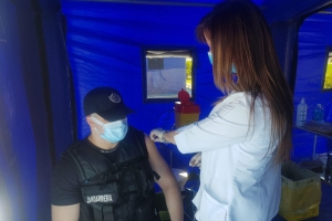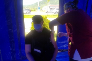 Vaccinarea în Maramureș: Exemplu pentru semeni, oferit de doi jandarmi! Ei s-au imunizat anti-COVID-19 la Baia Mare Drive Through (VIDEO ȘI FOTO)