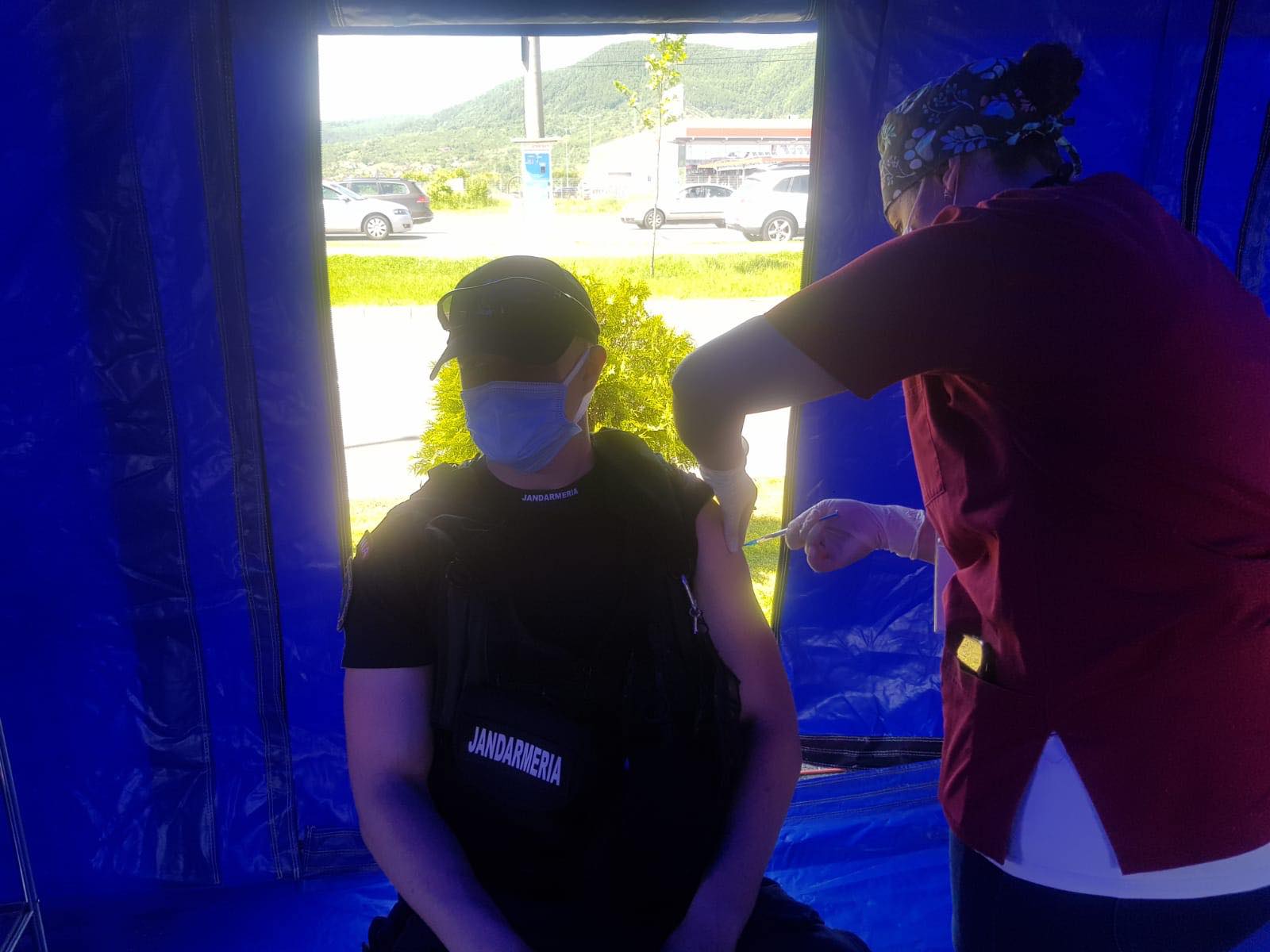 Doi jandarmi maramureșeni s-au vaccinat astăzi la Maratonul Drive-Thru Baia Mare.