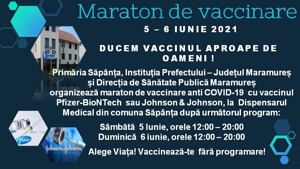 SĂPÂNȚA. Primăria Săpânţa, Instituția Prefectului-Județul Maramureș și Direcția de Sănătate Publică Maramureș organizează în perioada 5-6 iunie a.c., Maratonul de vaccinare ”Ducem vaccinul aproape de oameni!”