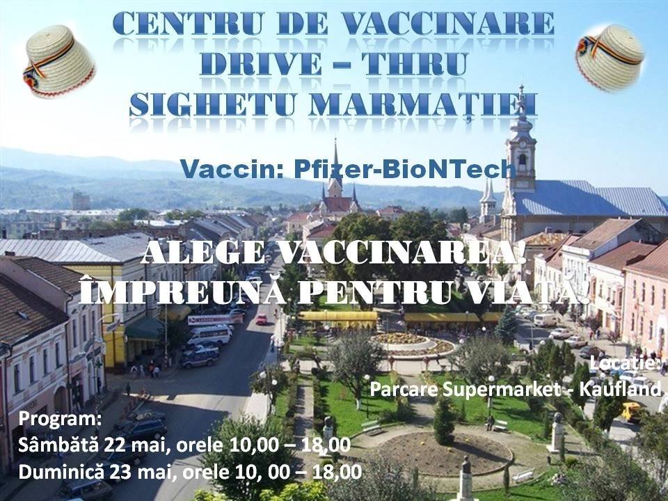 Primăria Sighetu Marmației, Instituția Prefectului-Județul Maramureș, Direcția de Sănătate Publică Maramureș, Inspectoratul pentru Situații de Urgență ”Gheorghe Pop de Băsești” al Județului Maramureș, Inspectoratul de Poliție al Județului Maramureș, Inspectoratul de Jandarmi Județean ”Pintea Viteazul” Maramureș, Serviciul de Ambulanță Județean Maramureș și Direcția Județeană de Telecomunicații Speciale Maramureș organizează în perioada 22-23 mai a.c., în parcarea supermarket-ului Kaufland, amplasat pe strada Bogdan Vodă, o campanie de vaccinare împotriva COVID-19. Cetățenii care doresc să se vaccineze se pot prezenta în parcarea agentului economic, indiferent de localitatea de domiciliu, fără programare, prezentând documente de identitate valabile (carte de identitate sau pașaport).