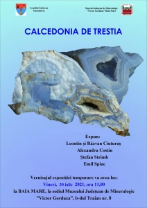 Mai exact, Muzeul Județean de Mineralogie „Victor Gorduza” Baia Mare vă invită vineri, 30 iulie 2021, ora 11:00, la vernisajul expoziției temporare ”Calcedonia de Trestia”, care va avea loc la sediul Muzeului din buevardul Traian, nr. 8, Baia Mare.