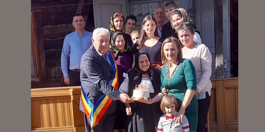 La aniversare i-a fost alături familia, dar și primarul comunei. Centenara a avut parte și de un frumos tort.