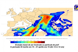 În perioada 30 martie – 01 aprilie circulația aerului se va face din sector preponderent sud-vestic și sudic, iar spre final vestic, astfel că va favoriza avansul dinspre nordul Africii a unei mase de aer tropical, încărcată cu particule de praf cu origine sahariană, îndeosebi către sudul și sud-estul Europei, inclusiv în zona țării noastre.