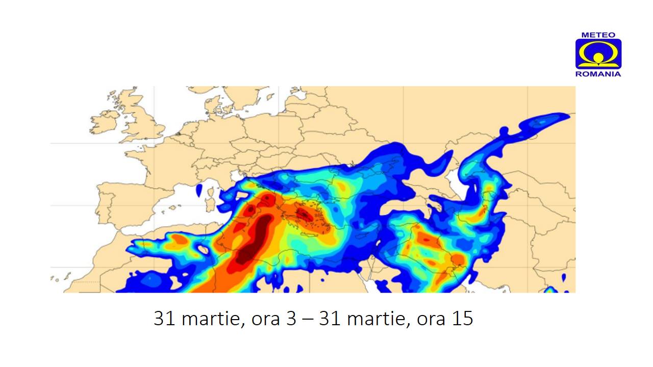 Concentrațiile particulelor de praf ce urmează să ajungă deasupra României vor fi mai reduse în comparație cu cele din sudul Peninsulei Italice și al Peninsulei Balcanice. Depunerile de praf vor putea fi observate în zonele și intervalele cu ploaie, începând de joi (31 martie) în vestul, centrul și nordul țării, apoi, pe arii restrânse și în rest, mai arată reprezentanții ANM.
