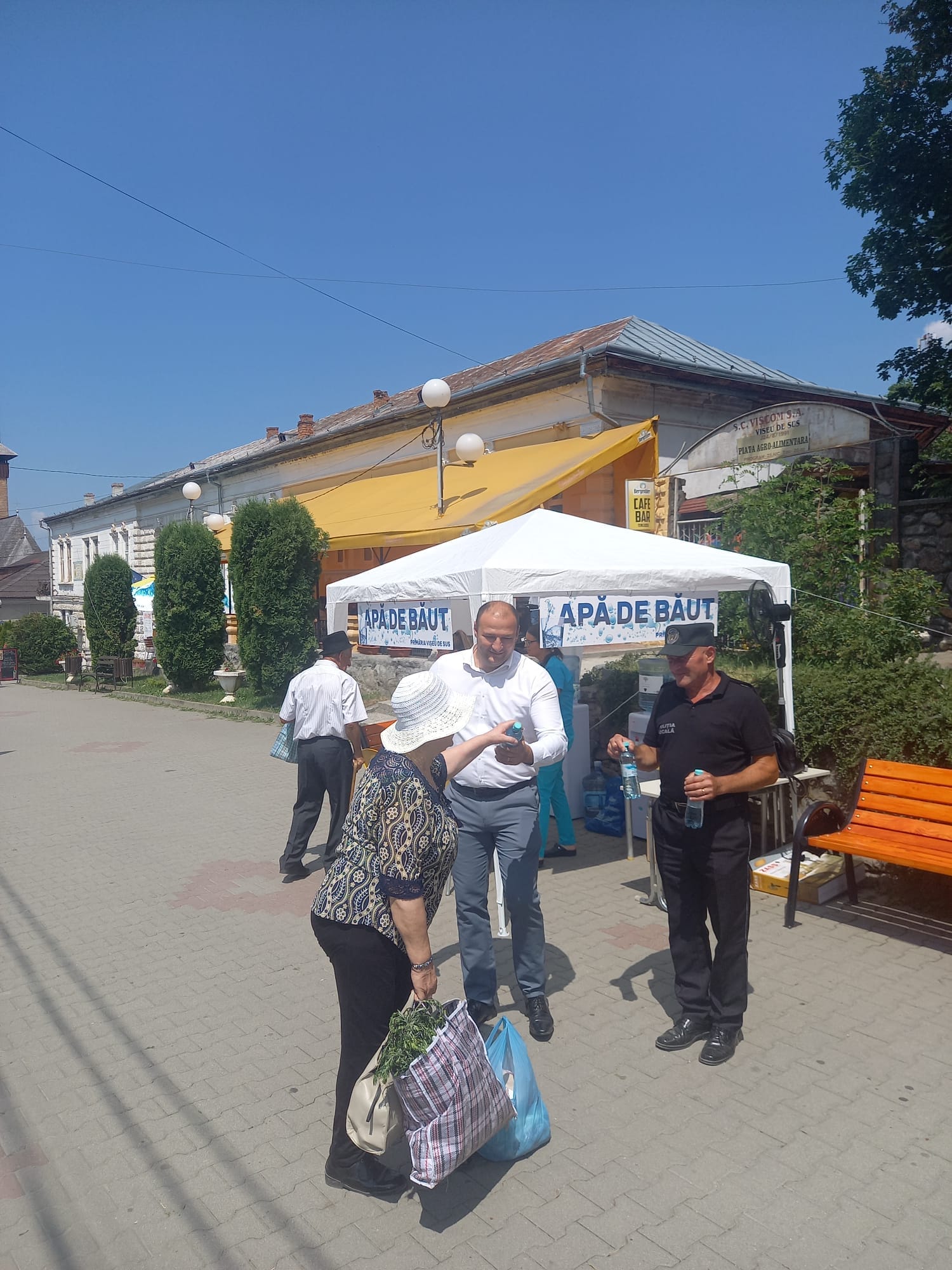 „Așadar, începând de vineri, a fost amenajat un cort în zona centrală a orașului, între primărie și restaurant Cerbu, unde vă punem la dispoziție apă rece și asistență medicală, pentru verificarea tensiunii și a pulsului. Personal am petrecut câteva ore azi printre dumneavoastră, oferind apă trecătorilor și un loc la umbră, activitate care se va desfășura pe toata perioada caniculei și de care mă voi îngriji personal.