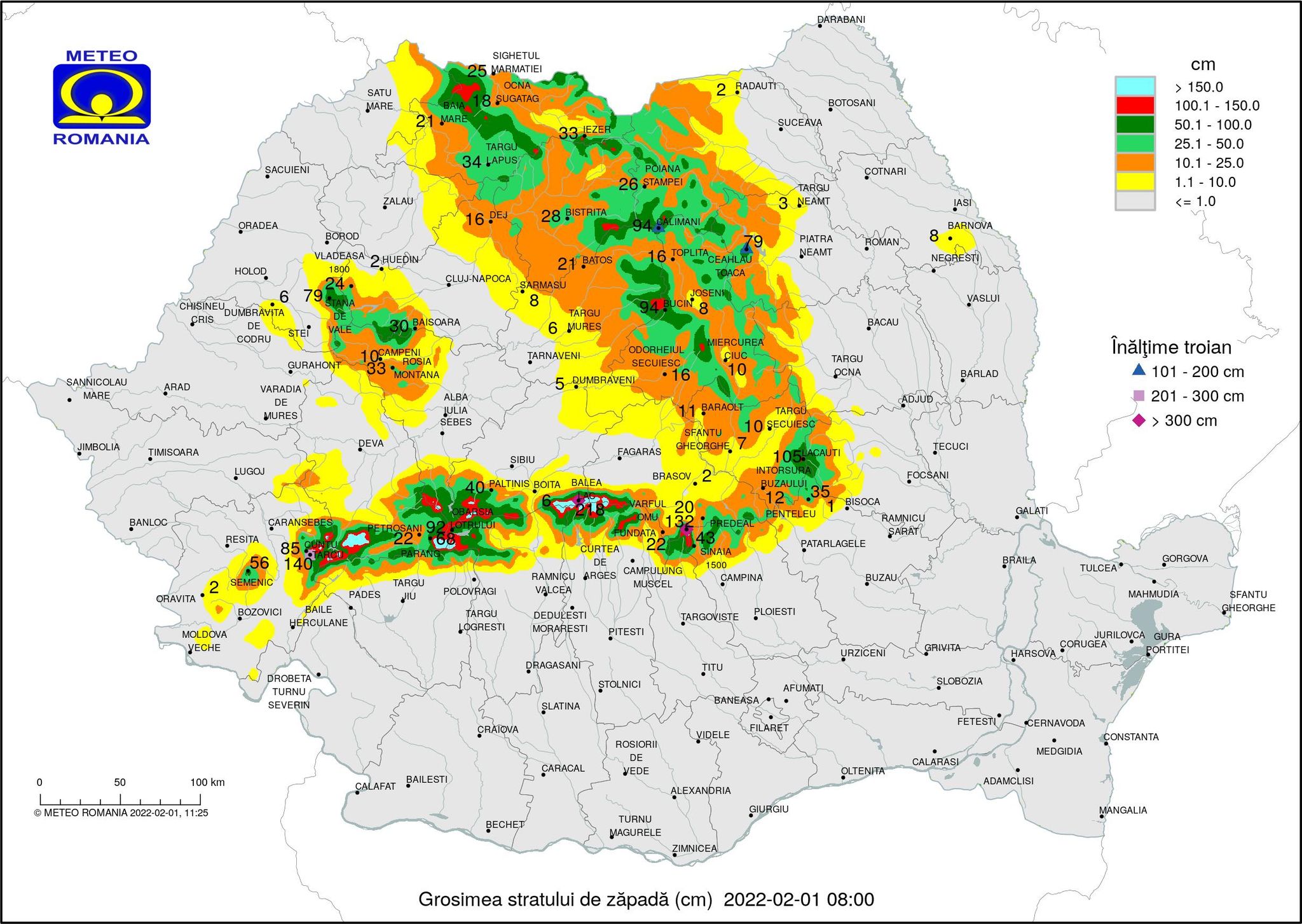 Cerul va fi temporar noros. Pe arii relativ extinse la inceputul intervalului si noaptea va ninge si se va depune strat nou de zapada. Vantul va sufla slab la moderat, cu intensificari noaptea indeosebi la munte cu rafale de pana la 50..60 km/h, iar in zona montana inalta de pana la 80..90 km/h unde va viscoli ninsoarea. Temperaturile maxime vor fi cuprinse intre 1-2 si 3-4 grade, iar cele minime, in scadere usoara fata de noaptea precedenta, vor fi cuprinse intre -9, -7 si -5,-4 grade. Izolat vor fi conditii de ceata.