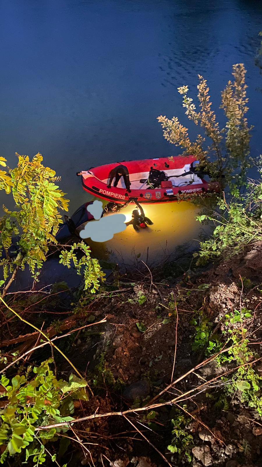 „Conducătorul auto a reușit să iasă din autoturism și a incercat, inițial, să salveze pasagerul, dar nu a reușit și a sunat apoi la 112. Între timp, mașina s-a scufundat la o adâncime de cel puțin 3 metri.