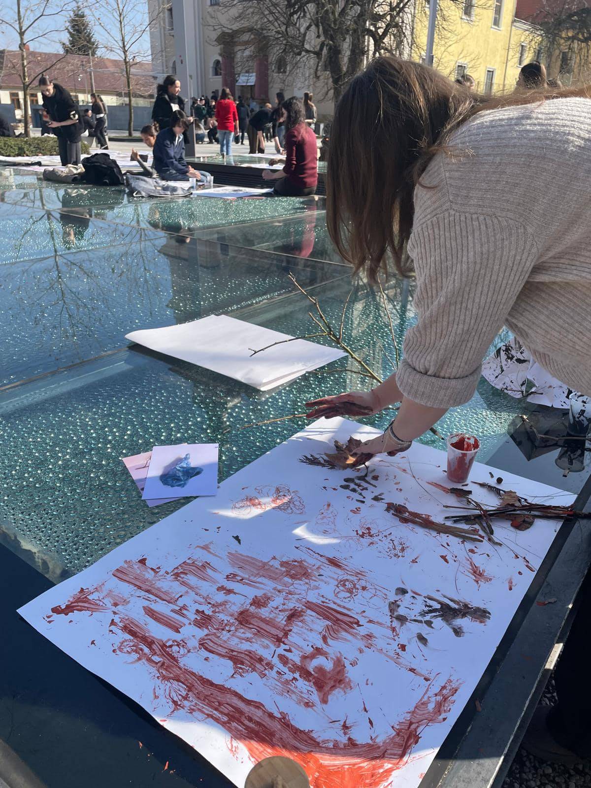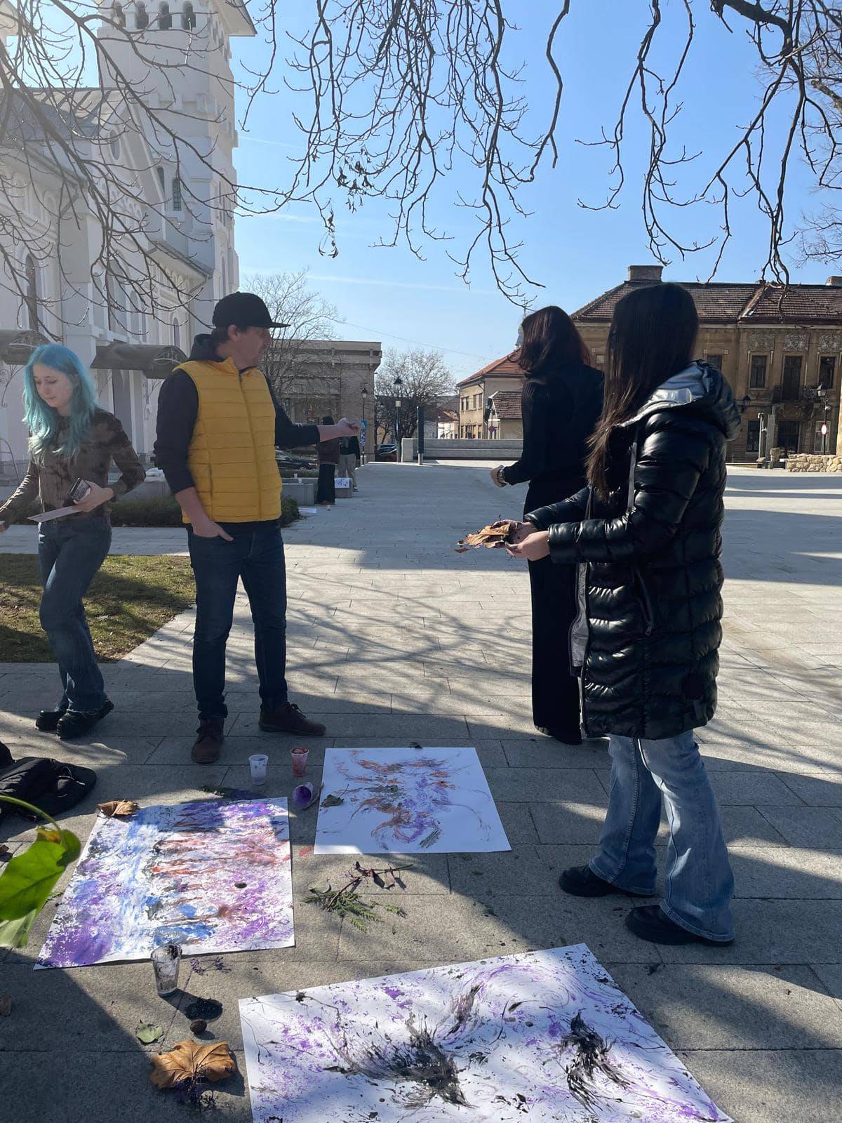 Piața Cetății din Baia Mare s-a transformat într-un veritabil atelier de creație în aer liber, unde elevii Colegiului de Arte au explorat frumusețea naturii prin tehnici artistice inovatoare