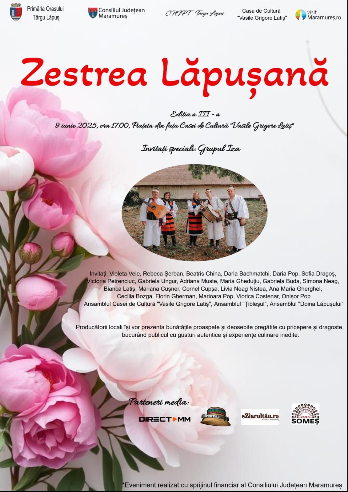 Invitatul special al evenimentului, Grupul Iza, păstrător al muzicii tradiționale din Maramureșul istoric, va aduce un plus de autenticitate și emoție acestei sărbători.