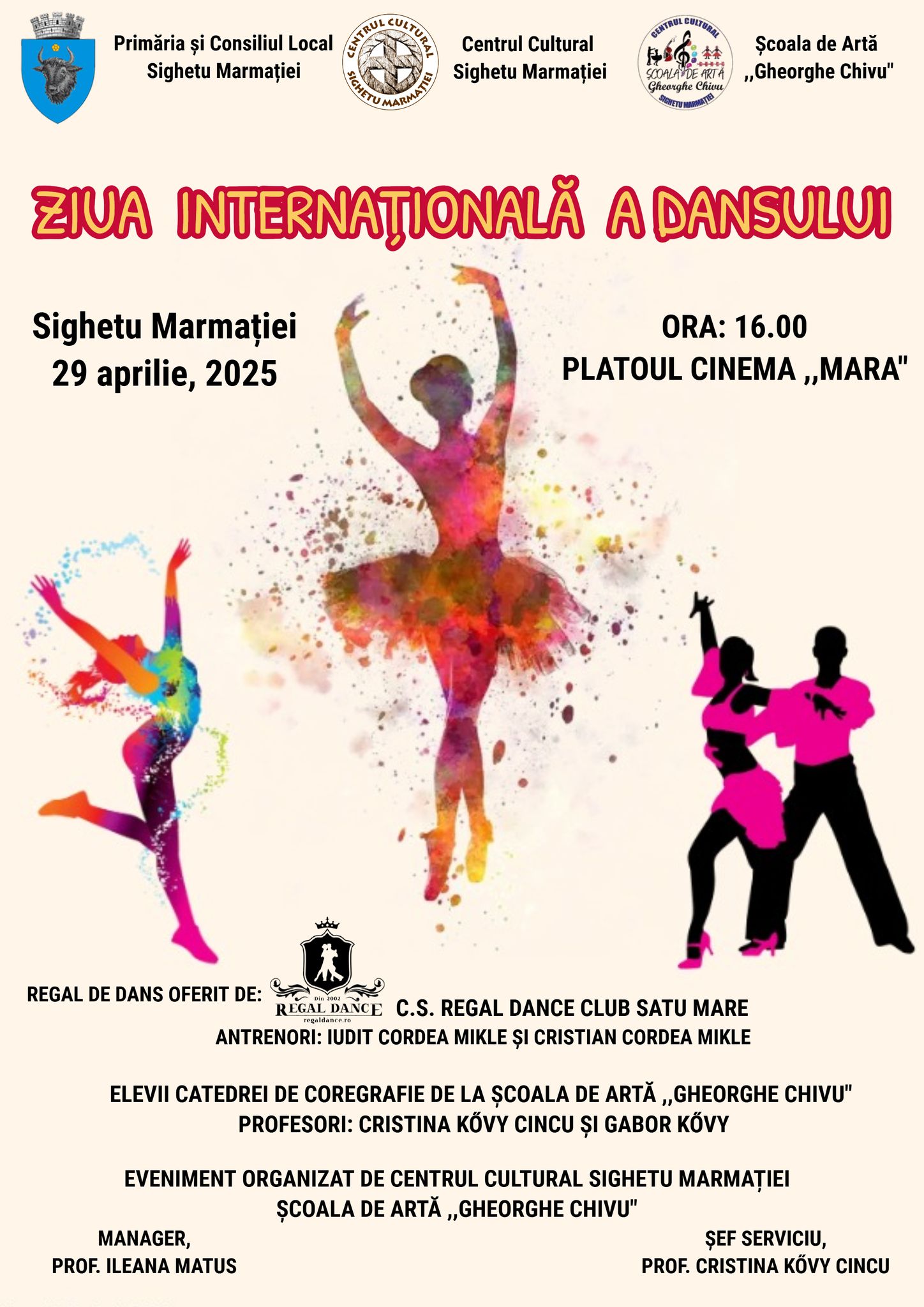 Ziua Internațională a Dansului va fi marcată și la Sighetu Marmației. Astfel, marți, 29 aprilie, de la ora 16.00, Platoul Cinema „Mara” va găzdui un regal de dans.