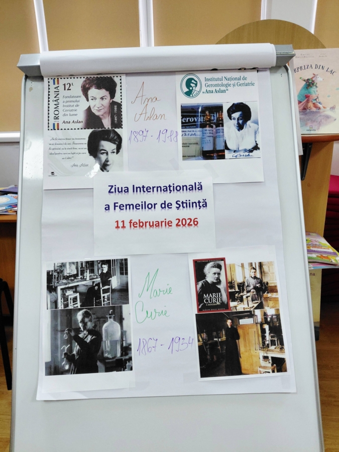 Biblioteca Școlii Gimnaziale „Avram Iancu” Baia Mare a găzduit miercuri, 11 februarie, o activitate dedicată Zilei Internaționale a Femeilor și Fetelor în Știință, având ca temă „Femei care au schimbat lumea științei: Ana Aslan și Marie Curie”.