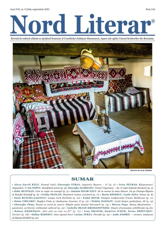 Apărut de curând, numărul din septembrie al Revistei de Cultură ”Nord Literar” vine cu un sumar dens și variat, ca de fiecare dată, și cu multe pagini dedicate aniversării ori portretizării unor personalități remarcabile.