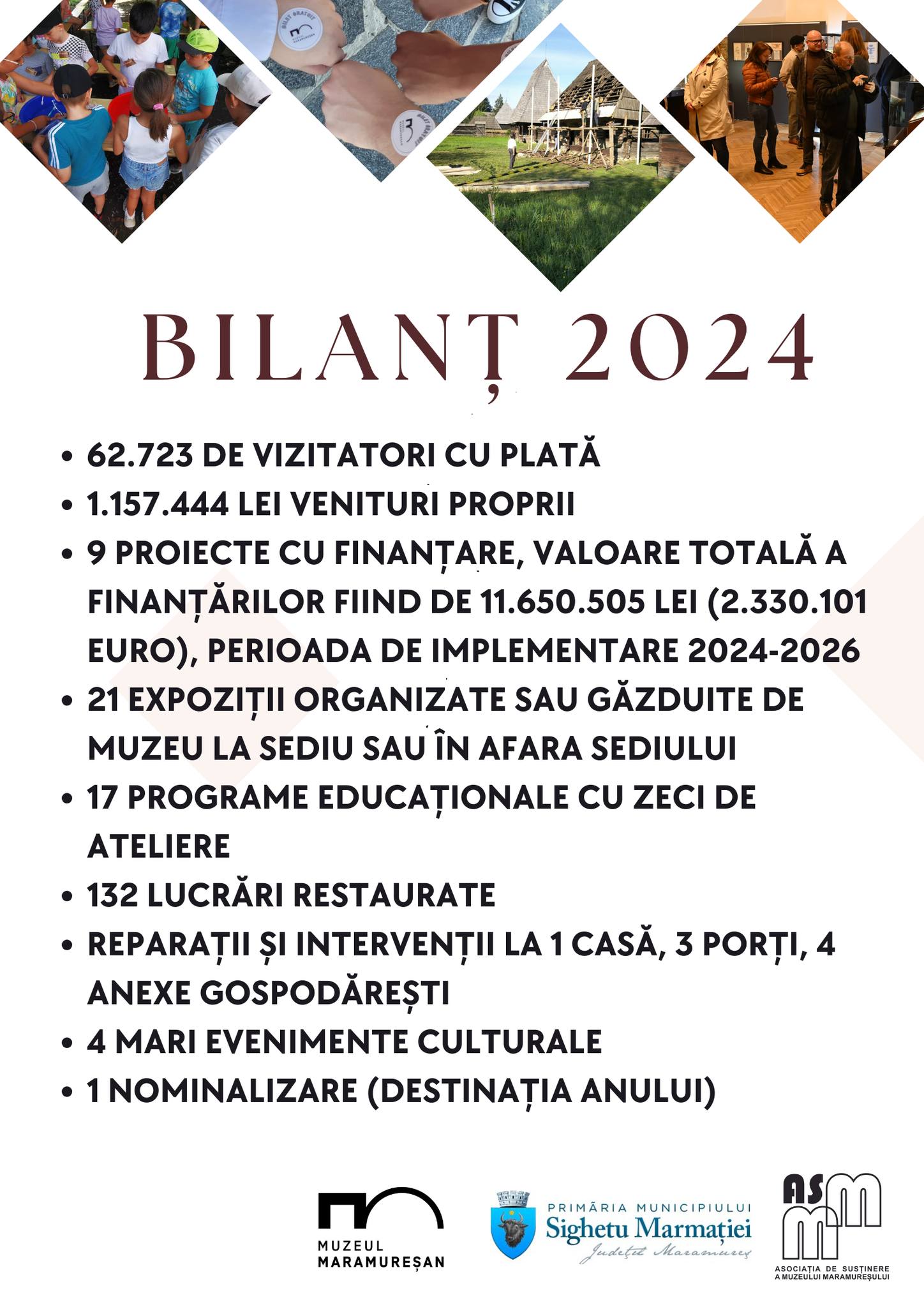Pentru Muzeul Maramureșan din Sighetu Marmației anul 2024 a fost unul foarte bun, cu multe proiecte, evenimente, expoziții, programe educaționale.