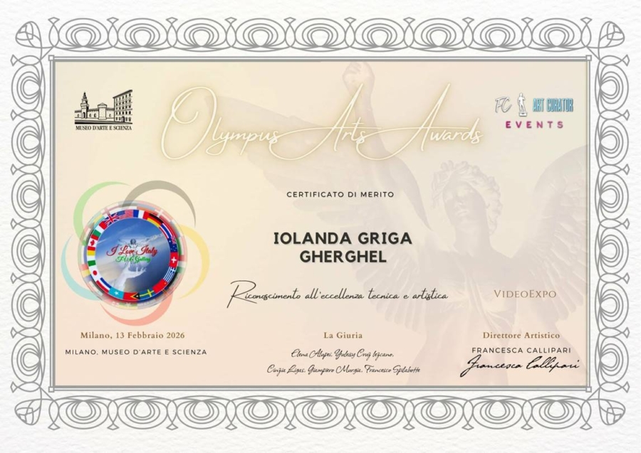 Artista băimăreană Iolanda Griga Gherghel a obținut o frumoasă recunoaștere internațională după participarea la prestigiosul eveniment artistic Olympus Arts Awards, desfășurat la Milano în luna februarie 2026. Invitația de a participa la această manifestare a venit încă din decembrie 2025, din partea curatoarei și criticului de artă Francesca Callipari. Tema propusă pentru această ediție a fost una profundă și provocatoare: relația dintre trup și materie, energia care prinde formă în corp, gravitația și grația, elemente inspirate și de atmosfera marilor competiții sportive.