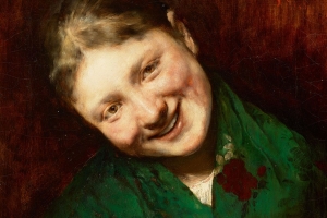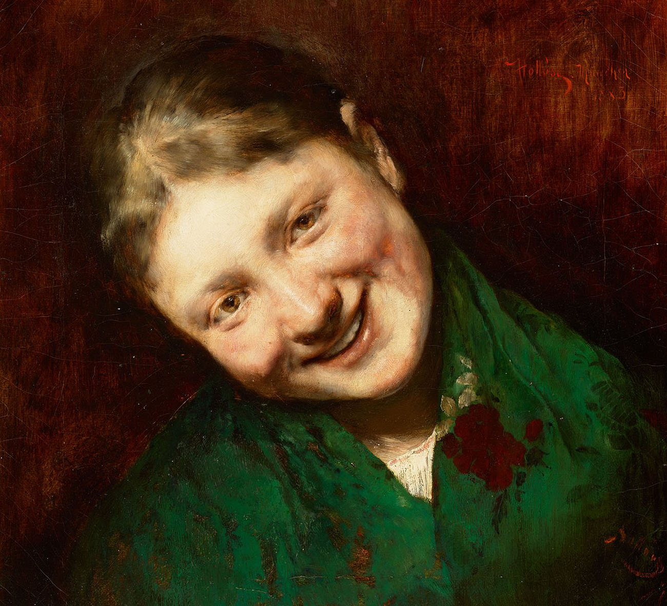 1 Hollósy 1883: Simon Hollósy, Tânără râzând, 1883, München, ulei pe pînză, 33 × 33 cm, © Szépművészeti Múzeum – Magyar Nemzeti Galéria: https://en.mng.hu/artworks/laughing-girl/