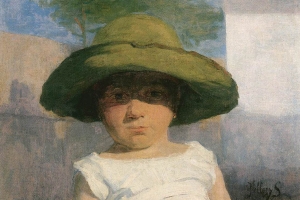 16 Hollósy 1900: Simon Hollósy, Potret de fetiță cu o pălărie verde, circa 1900, Baia Mare, ulei pe pânză, 43,3 × 48,7 cm, © Szépművészeti Múzeum – Magyar Nemzeti Galéria: https://commons.wikimedia.org/wiki/File:Hollósy,_Simon_-_Girl_with_a_Large_Green_Hat_(ca_1900).jpg