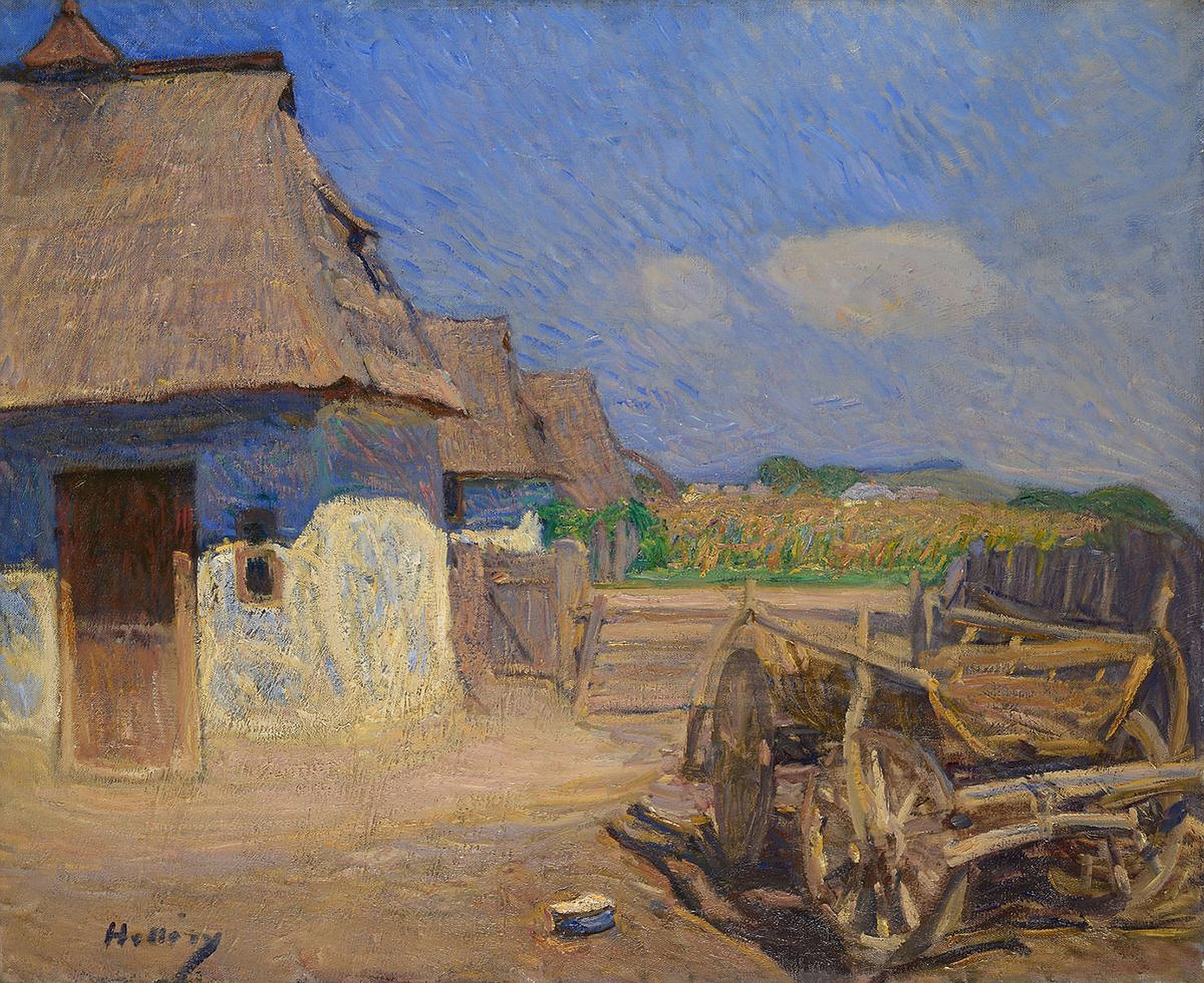 23 Hollósy 2012: Simon Hollósy, Curte țărănească cu căruță, 1912, Teceu, ulei pe pînză, 80 × 100 cm, © Szépművészeti Múzeum – Magyar Nemzeti Galéria: https://en.mng.hu/artworks/peasant-yard-with-a-cart/