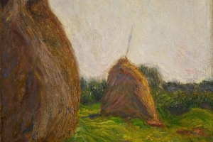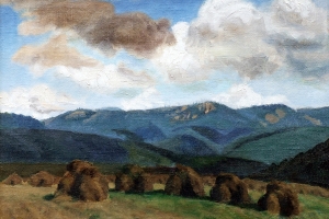 18 Hollósy 1908: Simon Hollósy, Peisaj cu claie de fân, Teceu, 1908, ulei pe pînză, 50 × 50 cm, © Muzeul Județean de Artă «Centrul Artistic Baia Mare: https://muzeuldeartabaiamare.files.wordpress.com/2011/07/clai-de-fan.jpg