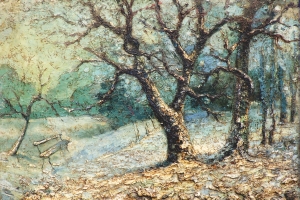 26 Hollósy atrib: Simon Hollósy, Peisaj de iarnă, (1913, Sighetu Marmației ?), ulei pe carton, 50 × 70 cm, © Muzeul Județean de Artă «Centrul Artistic Baia Mare