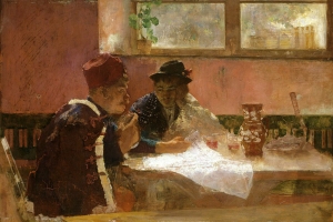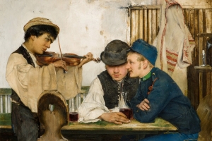 3 Hollósy 1884: Simon Hollósy, Vinul bun, 1884, München, ulei pe panel de lemn, 26,8 × 34,3 cm, © Szépművészeti Múzeum – Magyar Nemzeti Galéria: https://en.mng.hu/artworks/the-good-wine/