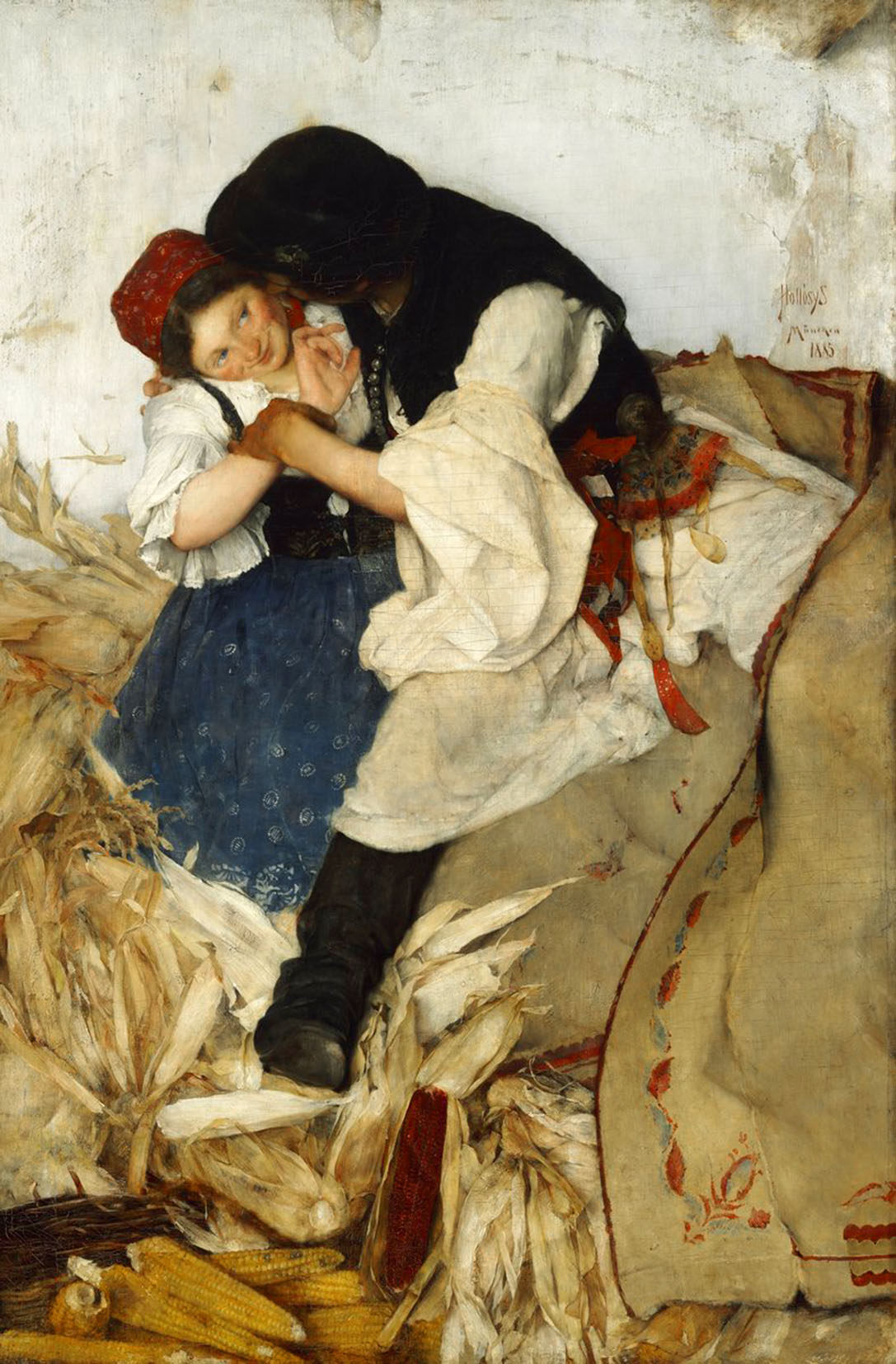 4 Hollósy 1885: Simon Hollósy, Depănușatul porumbului, 1885, München, ulei pe pânză, 151 × 100,5 cm, © Szépművészeti Múzeum – Magyar Nemzeti Galéria: https://en.mng.hu/artworks/husking-maize/