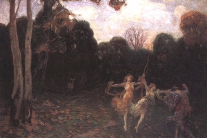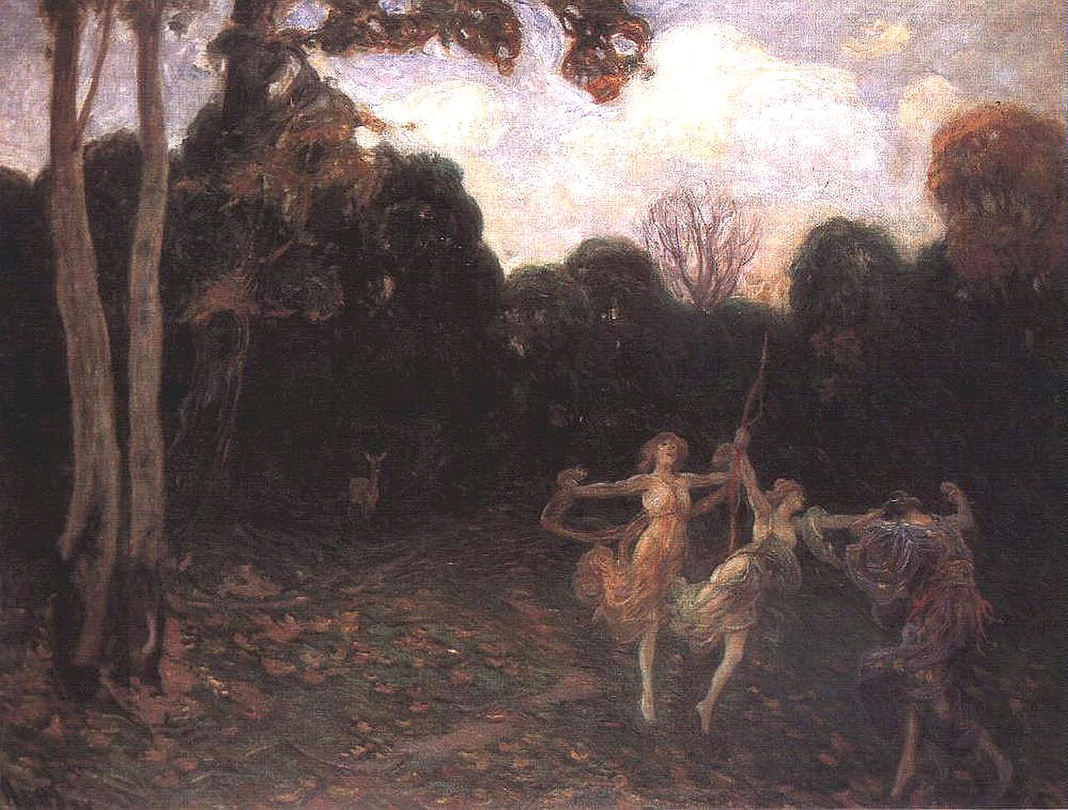 9 Hollósy 1895: Simon Hollósy, Dansatoare la marginea păurii, 1895, München, ulei pe pânză, 151 × 200 cm, © Szépművészeti Múzeum – Magyar Nemzeti Galéria: https://www.hung-art.hu/frames-e.html?/english/h/hollosy/muvek/1880-89/index.html
