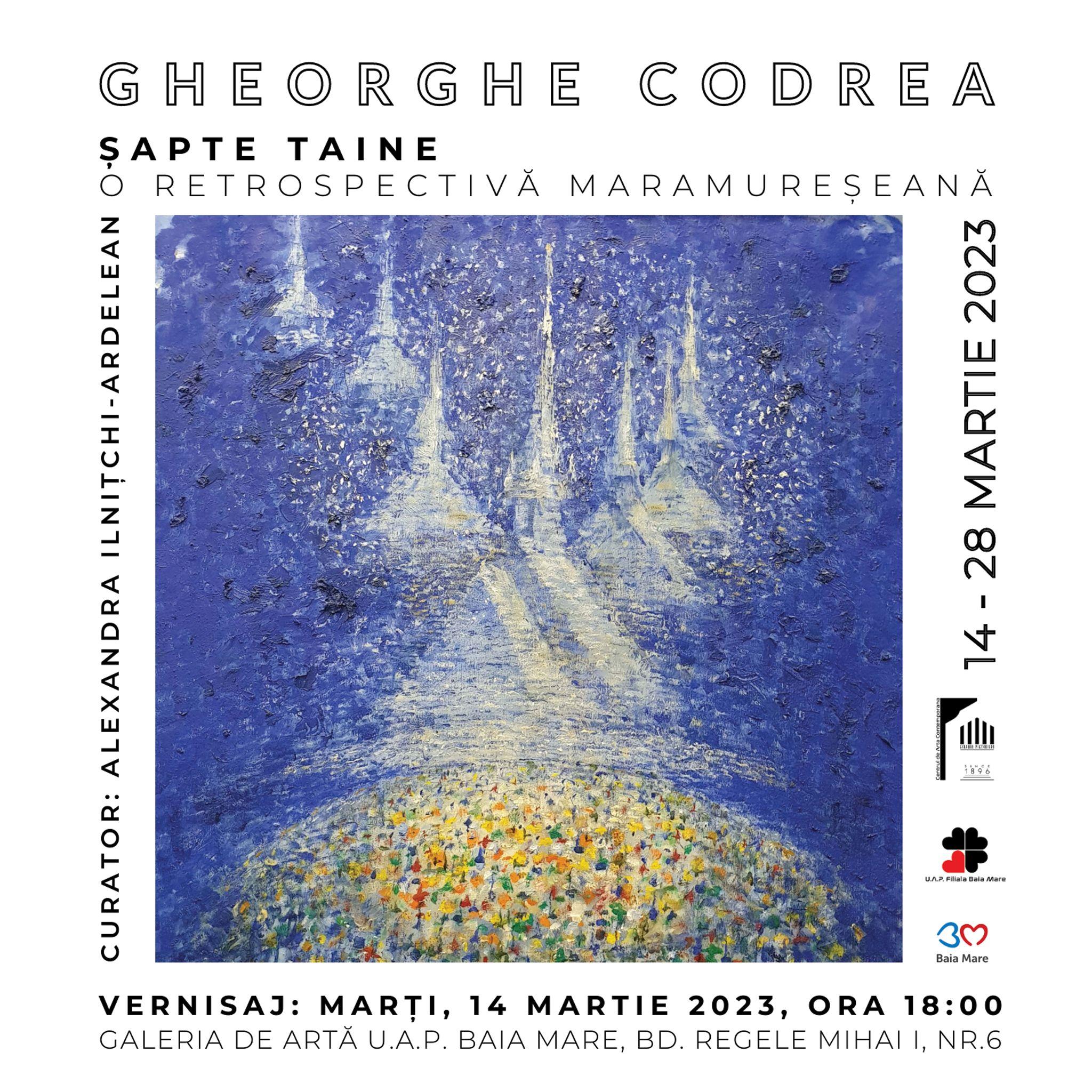 Marți, 14 martie, de la ora 18.00, la Galeria de Artă UAP Baia Mare (Bd. Regele Mihai I, nr. 6) va avea loc vernisajul expoziției „Șapte taine. O retrospectivă maramureșeană Gheorghe Codrea”, curatoriată de Alexandra Ilnițchi-Ardelean.