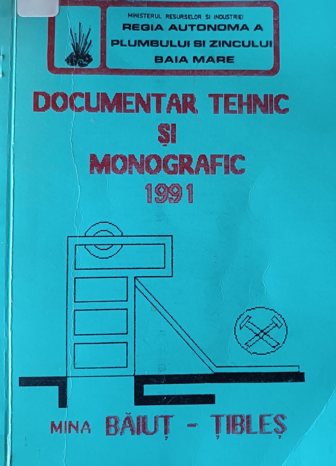 Coperta cărții ,,Documentar tehnic și monographic Mina Băiuț-Țibleș” – Autori Prof.Dr. Valeriu Achim și Ing. Aurel Ciolte.