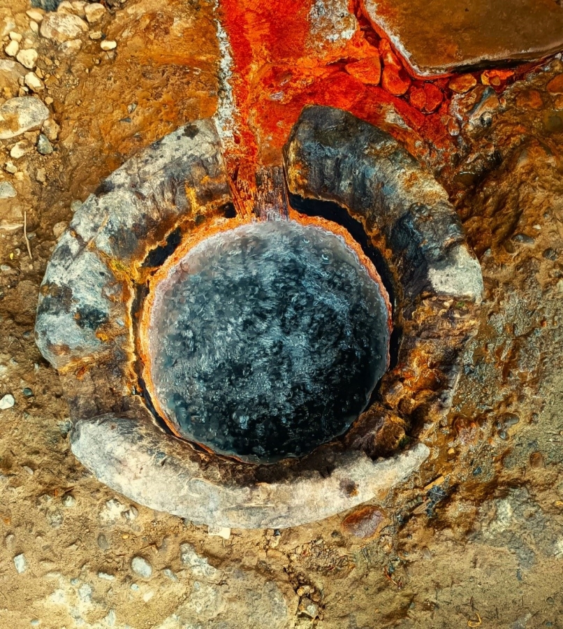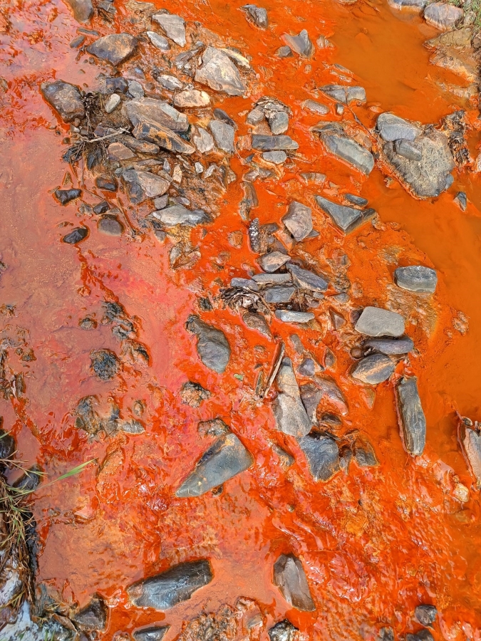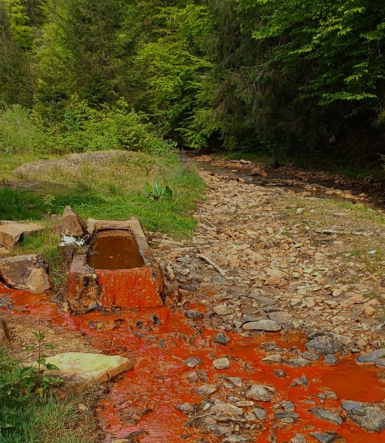 Conținutul mare de fier al izvorului mineral depus pe malul râului