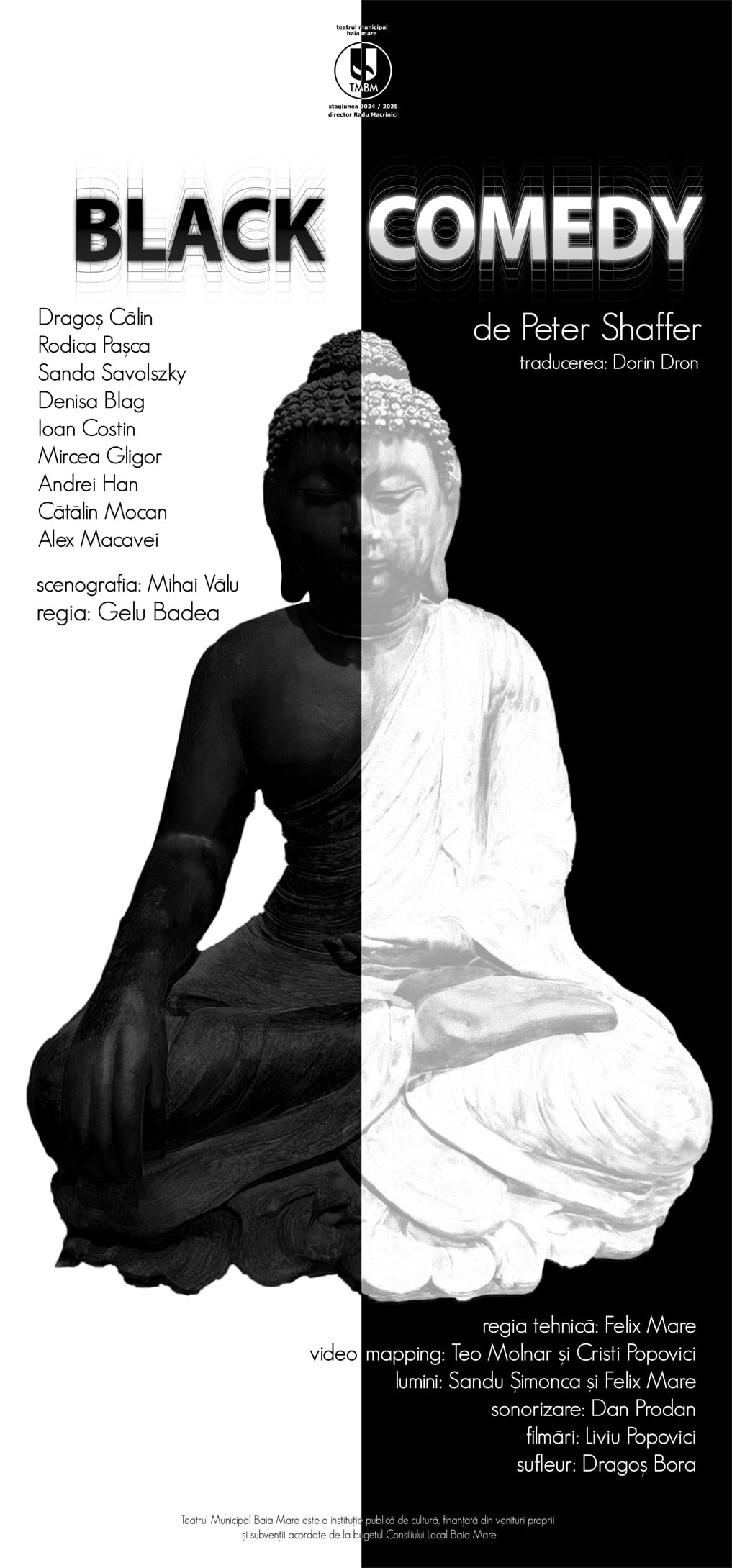 Duminică, 24 noiembrie, de la ora 19.00, la Teatrul Municipal Baia Mare va avea loc premiera spectacolului „Comedie pe întuneric” de Peter Shaffer, regia Gelu Badea, traducerea Dorin Dron, scenografia Mihai Vălu.
