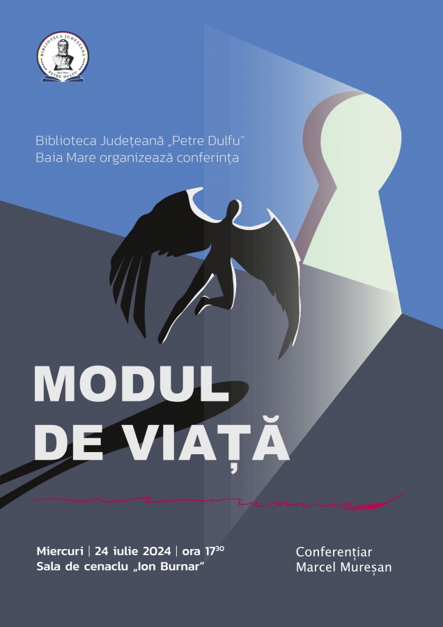 Miercuri, 24 iulie 2024, între orele 17.30-19.30, în Sala de cenaclu „Ion Burnar” a Bibliotecii Județene „Petre Dulfu” Baia Mare va avea loc Conferința „Provocările gândirii- incursiune în cunoașterea omului”. Cea de-a 10-a întâlnire a conferinței-dezbatere are ca temă: „Modul de viață”