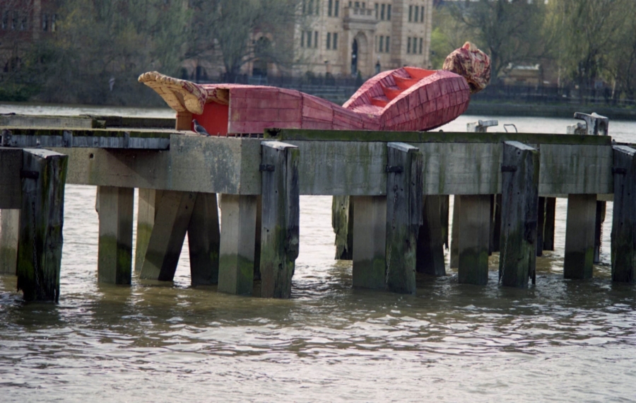 Lucrarea ,,Omul barcă” pe malul Tamisei-Londra – Sursă foto Mircea Roman