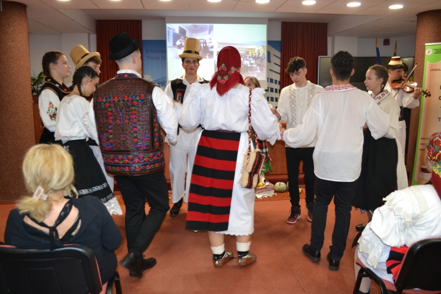 Cu acest prilej, colectivul bibliotecii a pregătit două expoziții de carte la Sala de lectură și la Secția Împrumut carte pentru adulți, dedicate patrimoniului cultural românesc. Elevii participanți au încântat publicul cu momente artistice de dans și muzică tradiționale românești, având oportunitatea deosebită de a-și demonstra talentul și creativitatea, dar și dragostea pentru cultura și obiceiurile locale.