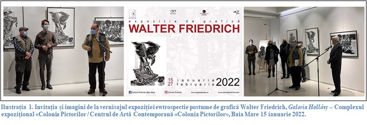 Albumul monografic consacrat operei artistului băimărean contemporan Walter Friedrich (1931-1996) – editat în 2021[i] și lansat în ianuarie 2022 cu prilejul expoziției retrospective postume, prezentată la Galeria Hollósy din cadrul Centrului de Artă Contemporană «Colonia Pictorilor» din Baia Mare, a marcat, simbolic și restitutiv, două comemorări petrecute simultan atunci, în anul 2021 și în „calendarul jubiliar 125” al Centrului Artistic Baia Mare: nouă decenii de la nașterea artistului și, respectiv, un sfert de veac de la trecerea artistului în istorie. Cu acel prilej, ne întâlneam cu o contextualitate bogată, trasată prin intersectarea unor repere simbolice ce veneau să focalizeze perspectiva integratoare, de readucere în actualitate a operei unuia dintre cei mai consistenți creatori care au modelat vectorii evolutivi ai Centrului Artistic Baia Mare în anii postbelici ai epocii sale contemporane.