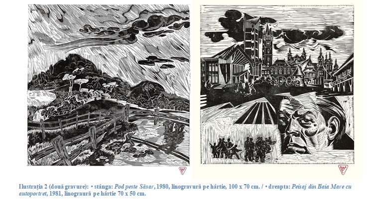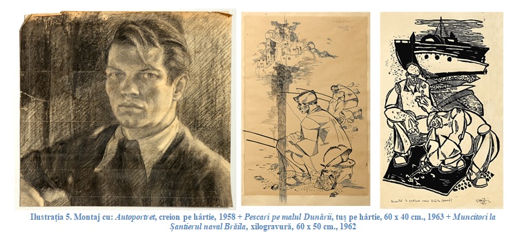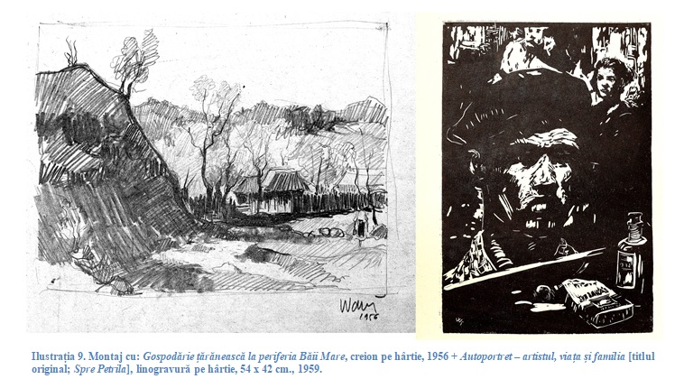 Această tranziție înspre prospectarea universului interior al motivului antropomorf avea să fie anticipată de timpuriu, încă din al doilea an al perioadei petrecute în Valea Jiului, prin singulara și metaforic expresiva lucrare de mici dimensiuni Autoportret – artistul, viața și familia (1959, linogravură) – ce ne pare azi surprinzătoare, având un caracter premonitoriu autobiografic, și căreia astăzi îi putem atribui, retrospectiv, valențele unei autentice ars poetica: bustul autoportret al artistului cu simbolicul „basc de pictor” pe cap, așezat în fața unei tejghele cu un pachet de țigări și o sticlă „cu tărie”, având conturate în fundal portretele–bust ale soției și ale altor două personaje (cel mai probabil părinții artistului).