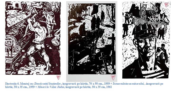 Dacă în anii de început interesul artistului s-a concentrat asupra tipului iconorafic al minerul ca personaj individual/colectiv emblematic (celor menționate mai sus li se adaugă Mineri în Valea Jiului, 1961; Miner fruntaș Tucuriuc, 1963, ambele linogravuri, etc.), după 1961 tipologiile se diversifică prin cuprinderea mai generală a motivului uvrierului urban (constructorul industrial, edilitar, micul meșteșugar), iar mai apoi prin extensii care sparg „monopolul identitar muncitoresc” (ce rămâne însă recurent în anii deceniilor 1970 și 1980) și abordează alte toposuri umane și de context identitar (Îmblânzitoare de lei, 1962, linogravură; Pescari pe malul Dunării, 1962, tuș – expus la Baia Mare în 1963 [i]; Dansatoarea, 1963, Melancolie, 1963, Plictiseală în sala de așteptare, 1963, Pe pârtia de schi, 1963, Cioban momârlan, 1963, Constructori, 1964 [ii] – toate linogravuri; Pietrar, 1964 [iii] și Crescătoarele de găini, 1964 – toate ulei pe pânză [iv]