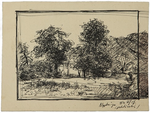 Desenul în tuș negru evidențiază notarea rapidă, prin conducerea spontană și nervoasă a scrierii liniilor hașurilor într-o manieră de înregistrare a impresiilor tipic plein air-istă.